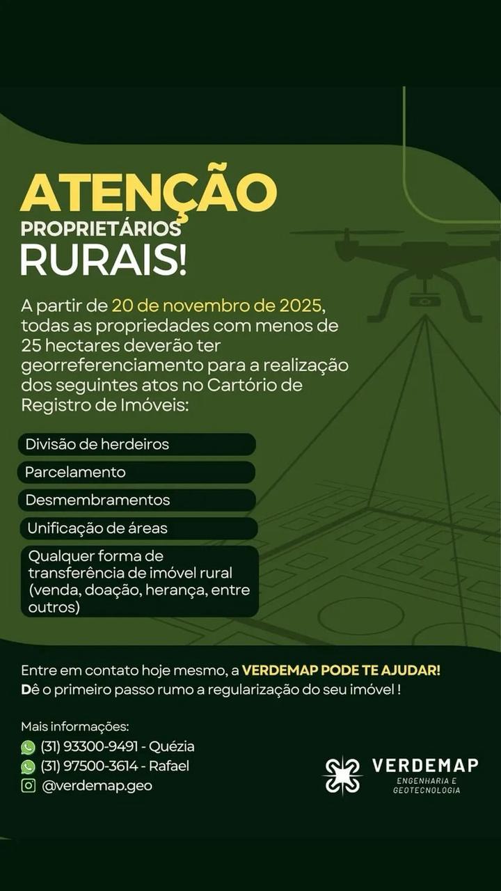 Bio: Verdemap Engenharia e Geotecnologias é uma empresa especializada em serviços de regularização fundiária, topografia e projetos de engenharia, atuando com excelência técnica e segurança jurídica. Nosso compromisso é oferecer soluções completas que assegurem tranquilidade, valorização patrimonial e conformidade com as legislações vigentes. Nossos serviços abrangem: Divisão de herdeiros e partilha de imóveis com segurança jurídica; Usucapião, com levantamentos topográficos para regularização de posse; Georreferenciamento de imóveis rurais conforme normas do INCRA/SIGEF; Retificação e unificação de áreas, com atualização precisa de registros; Desmembramento e desdobro de áreas para separação legal de terrenos; Extremação de áreas, definindo de forma exata os limites de propriedades; Projetos de loteamento e chacreamento para desenvolvimento urbano e rural; Projetos de terraplenagem para nivelamento e preparo de terrenos; Levantamento topográfico para projetos e execução de obras; Locação de obras, garantindo marcações exatas no terreno; Treinamentos e mentorias em engenharia, topografia e geotecnologias. Na Verdemap, unimos conhecimento técnico, inovação e responsabilidade para transformar cada desafio em resultados eficientes e duradouros.