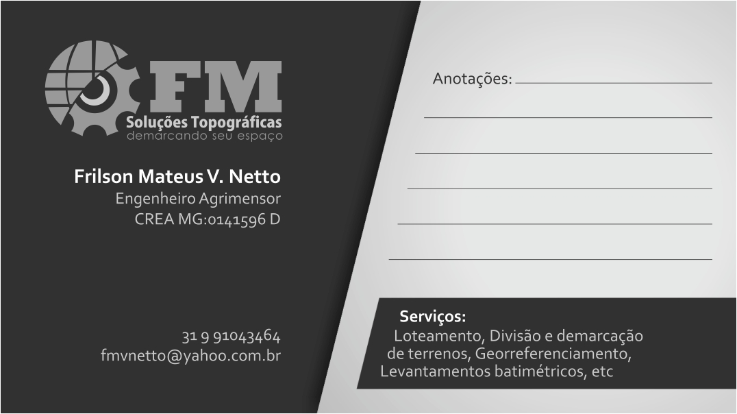 Descrição: Realizamos todo tipo de Levantamento Planialtimétrico Cadastral, para toda e qualquer finalidade. Seja em terreno plano ou acidentado.